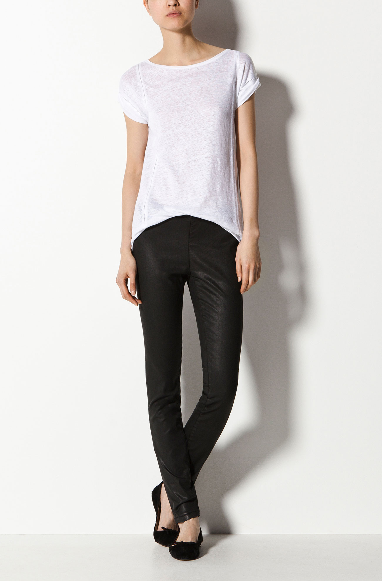 Calças Efeito Pele Faux Leather Trousers - MassimoDutti.com