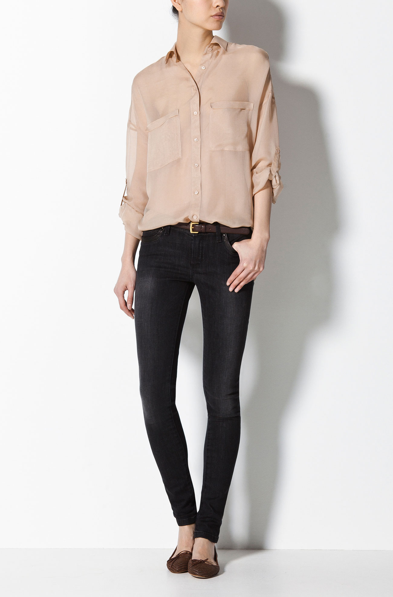 Camisa Seda Chiffon (côr beje) Chiffon Silk Blouse (colour beje) - Massimo Dutti
